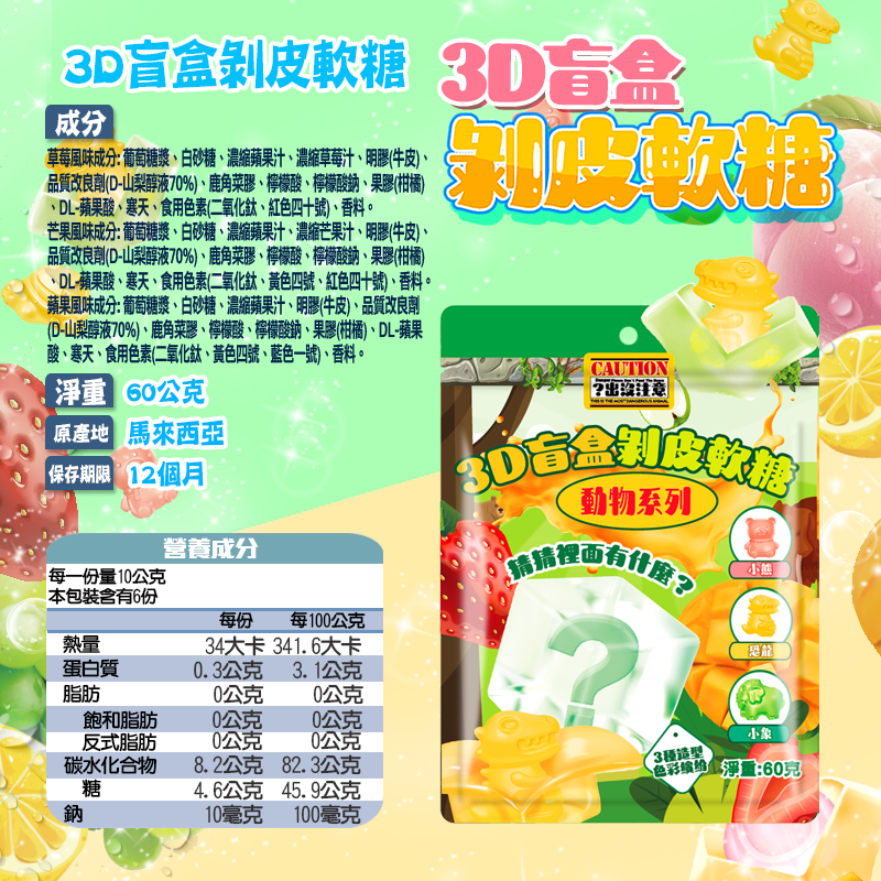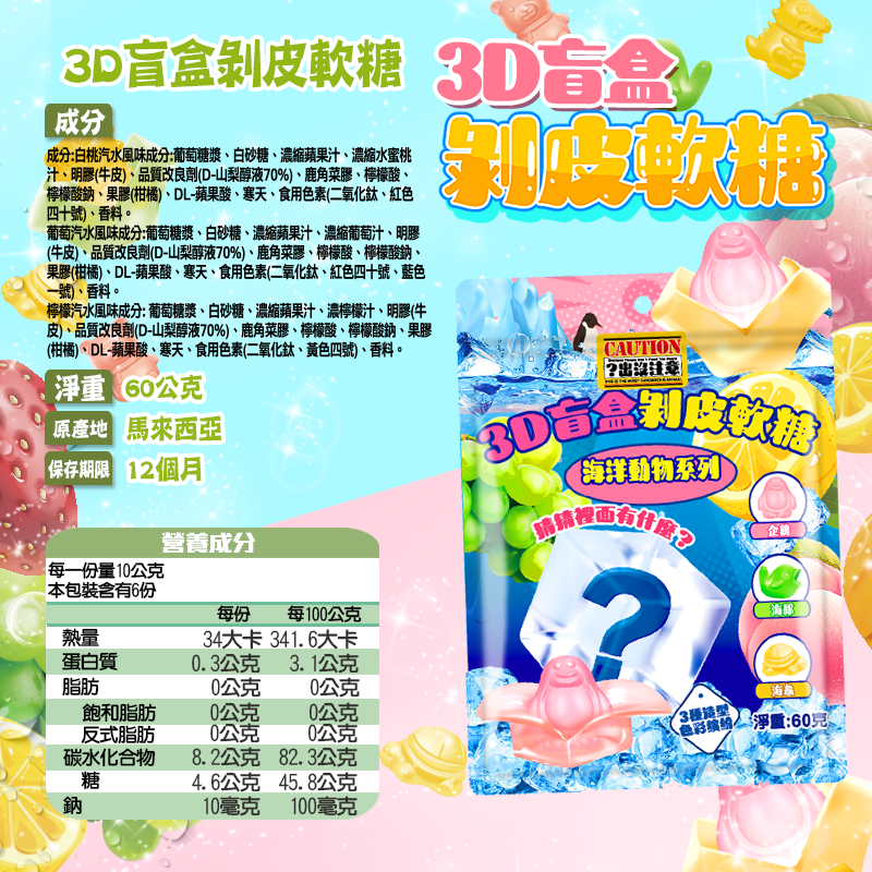 可剝皮的水果軟糖 藏著海洋及森林世界的小動物造型