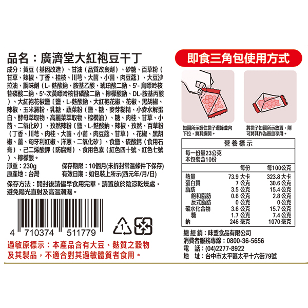 廣濟堂大紅袍豆干丁三角包
